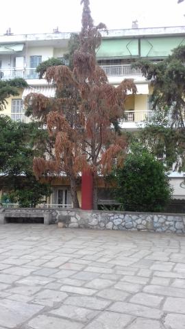 Δέντρο στο προαύλιο του Προφήτου Ηλία. Ίσως πρέπει να ελέγξετε γιατί ενήλικο δέντρο σαν κι αυτό ξεράθηκε; Μήπως πρόκειται για το φλοιοφάγο έντομο του Σέιχ Σου.;