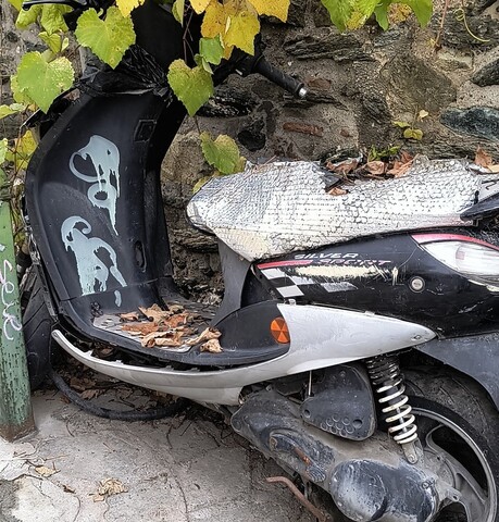 Στην γωνία Ηροδότου με Κόδρου υπάρχει εδώ και τουλάχιστον μια πενταετία ένα εμφανώς παρατημένο σκουτεράκι. Νομίζω ότι είναι ώρα να κινηθεί η διαδικασία απομάκρυνσης.