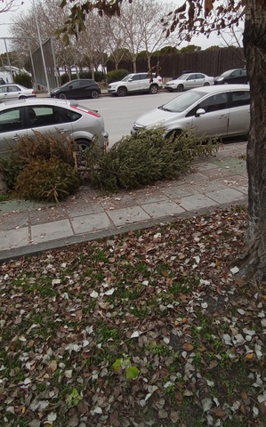 Φυσικό δέντρο Χριστουγεννιάτικο, δίπλα στους κάδους.