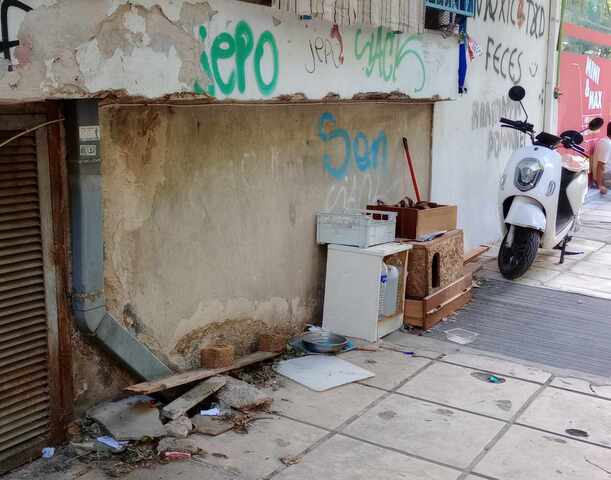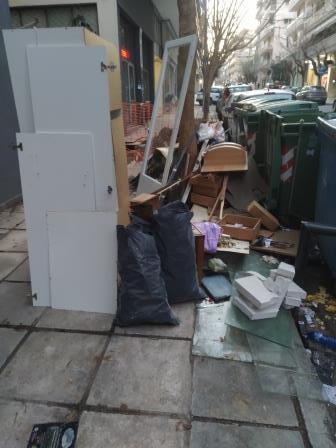 ντουλάπα, συρτάρια, μπαλκονόπορτα, σακκούλες με μπάζα και διάφορα σκουπίδια