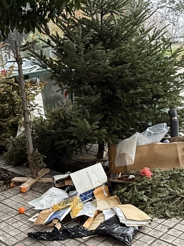 Φυσικό δέντρο Χριστουγεννιάτικο πίσω από τον κάδο