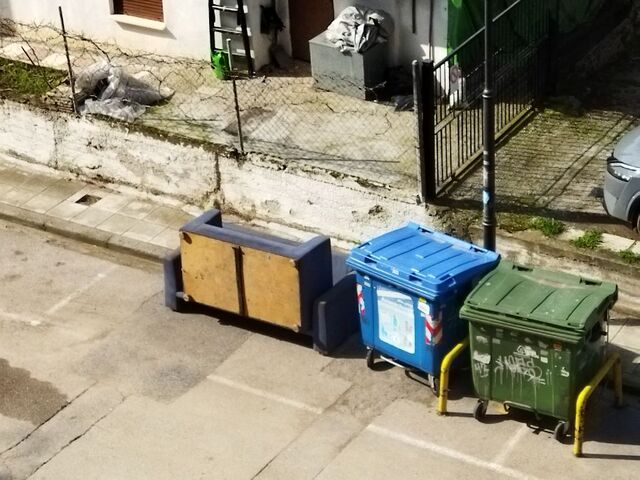 Στην Ωκεανιδων 9 υπαρχει στο πεζοδρομιο ενας γωνιακος καναπες χωρισμενος σε δυο κομματια.