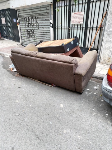 2 καναπέδες και μια τραπεζαρία σπασμένη στην γωνία Φάωνος και Ορέστου