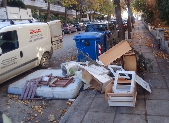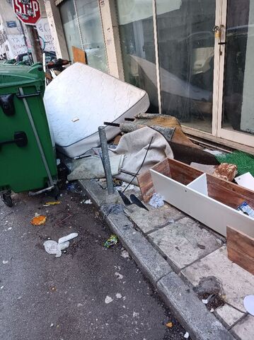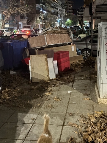 Κάποιος επανειλημμένα εδώ και 6 μήνες αφήνει ογκώδη στο πεζοδρόμιο, η κατάσταση έχει γίνει ανυπόφορη νιώθουμε λες και ζούμε σε σκουπιδότοπο