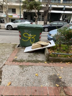 Δίπλα στον κάδο υπάρχουν πεταμένα πραγματα