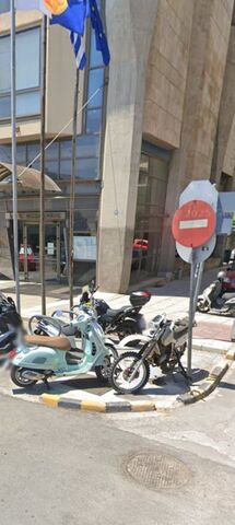 Στο κενό σημείο που υπάρχει απέναντι από το hotel Vanoro, ώστε να μειωθούν τα μηχανάκια από τα πεζοδρομια μιας και στο σημείο είναι πολλά αυτά που παρκαρουν πάνω στο...