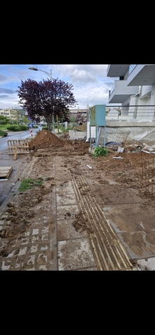 Εργοτάξιο που δεν ακολουθεί τους κανόνες δημόσιας ασφαλείας, χωρίς σημανση και προστατευτικους φρακτες. Λοφοι χώματος στο πεζοδρόμιο!!