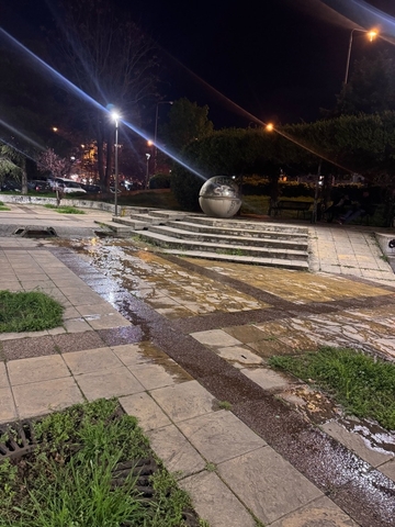 Στην μικρή πλατεία στην Βούλγαρη έχει βουλώσει το Συντριβάνι και τρέχουν τα νερά μέχρι κάτω στο δρόμο