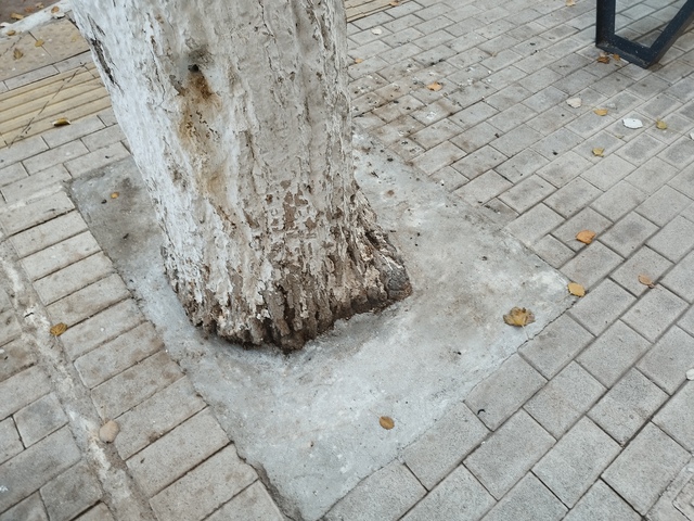 Τσιμέντο και πλάκες σε δεντροδοχο.