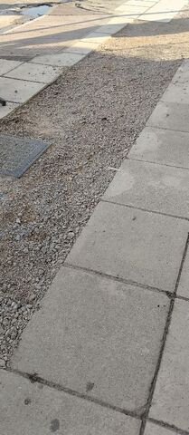 Οδός Ίωνος Δραγούμη 1 Με Κουντουριώτου στο καφέ Γρηγόρης τά πεζοδρόμιο μετά από εργασίες δεν έχει αποκατασταθεί.