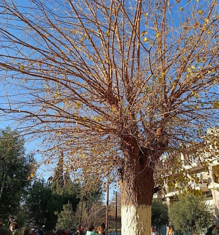 Το συγκεκριμένο δέντρο έξω από το Μασούτη, στην οδό Στρατηγού Καλλαρή 4, φαίνεται να έχει κάποιο πρόβλημα.