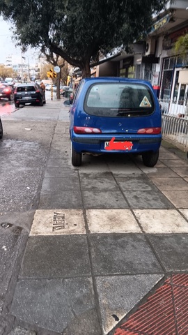 Εγκαταλελειμμένο ΙΧ Fiat Seicento μπλε σε ακινησία από το το 2021 παρατημένο επάνω σε πεζοδρόμιο.
