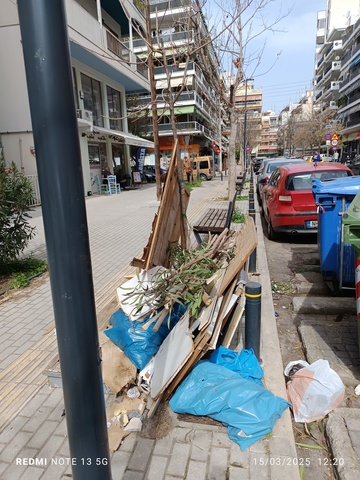 Σχετικά με την σήμανση που αναφέρεται, μια φορά εμφανίστηκαν μόνο! Τα αυτοκίνητα των ενοίκων είχαν απομακρυνθεί και ο εργολάβος έκρινε ότι δεν είχε το κατάλληλο ανυψωτικό μηχάνημα για την εργασία και αποχώρησε! Αναμένουμε για τις ενέργειες σας, καθώς η κλίση του δέντρου...