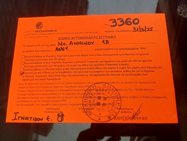 Με πινακιδα (ο αριθμός κυκλοφορίας έχει αφαιρεθεί)