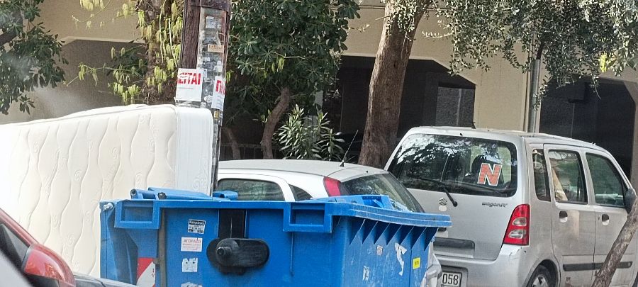 Εγκαταλειμμένο στρώμα κρεβατιού, διπλό, βρίσκεται στην περιοχή Κάτω Τούμπα, στην διασταύρωση των οδών Ιωνίας και Σάντας. Κατεβαίνοντας την οδό Σάντας, στη διασταύρωση με Ιωνίας, στο δεξί μας χέρι, δίπλα στον μπλε κάδο της ανακύκλωσης. Παρακαλώ να περάσετε να το μαζέψετε.