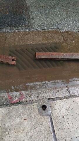 SOS το οδόστρωμα στην άκρη έχει κάτι σαν βουναλάκι είναι υπερυψωμένο και δεν φεύγουν τα νερά της βροχής στην αποχέτευση
