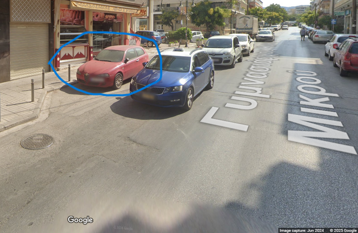 Το εν λογω οχημα ειναι εκει πανω απο χρονο και πιανει 2 θεσεις..οπως μπορειτε να δειτε και απο την εφαρμογη street view η φωτογραφια ειναι τραβηγμενη Ιουνιο του 2024
