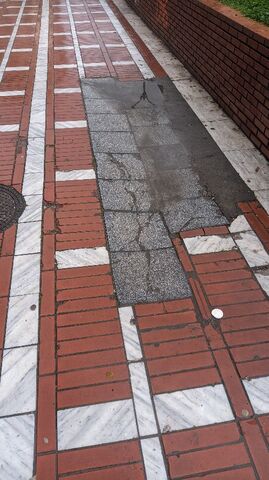 Πριν πάρα πολλά χρόνια έγινε αυτή η προχειροδουλειά - μερεμέτι που φαίνεται στη φωτογραφία κι από τότε έχει μείνει έτσι. Μπάλωμα πεζοδρομίου με άκυρα πλακάκια δίπλα στην καμάρα που θα περίμενε κανείς να προσέχουμε λίγο την αρχιτεκτονική πλησίον της και φυσικά τόσο...