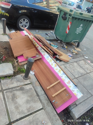 Καλησπέρα, στην οδό γιάννη χαλκίδη 6 (πρώην Κωνσταντινουπολεως 152) , περιοχή χαριλάου δίπλα στους κάδους υπάρχουν παρατημένα ξύλα από παλιά έπιπλα, παρακαλώ να απομακρυνθούν