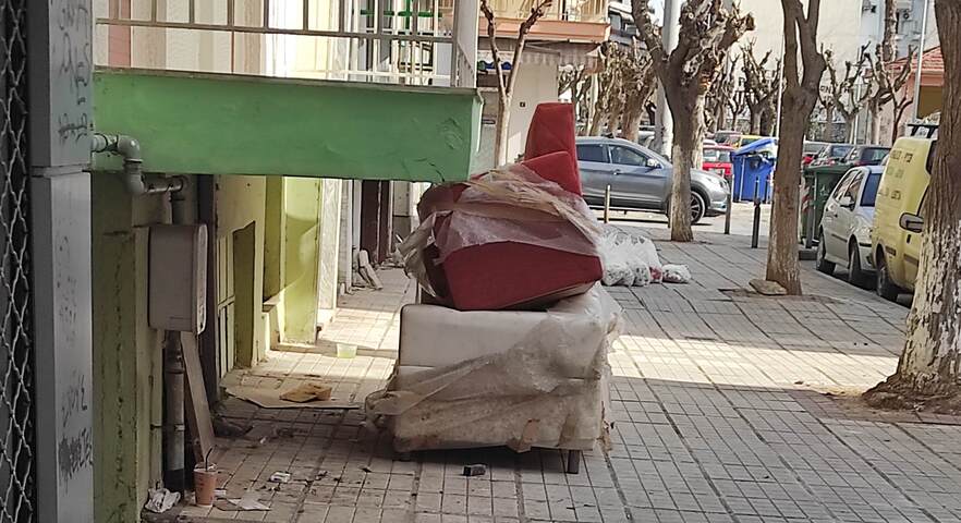 Έπιπλα παρατημένα επί του πεζοδρομίου στην οδό Ρεγκουκου