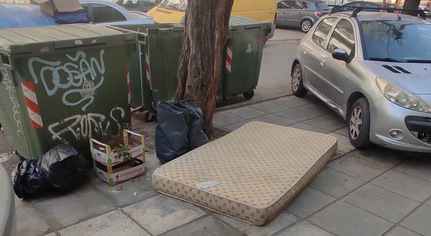 Πετάχτηκε από εταιρεία επίπλων στρώμα στον δρόμο δίπλα στον κάδο επί της οδού Μπακατσέλου 24, κέντρο, Α δημοτική κοινότητα