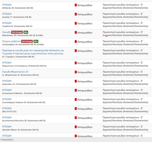 Περισυλλογή ογκωδών αντικειμένων - Ε' Δημοτική Κοινότητα (Ανατολική Θεσσαλονίκη)
