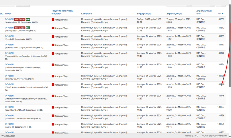 Εχθές απαντήσατε στο προηγούμενο αίτημα μου για το ίδιο θέμα που δεν ήταν το πρώτο, είναι το τέταρτο για τον κάδο που βρίσκεται επάνω στον λεωφορειοδρόμο και εκτός εσοχης, από τον Ιανουάριο και είναι ακόμα εκεί, η φωτογραφία είναι σημερινή, παρακαλώ να απομακρυνθεί.