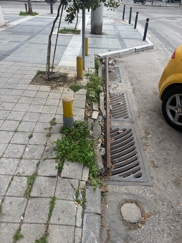 Το ρείθρο του πεζοδρομίου έχει καταστραφεί τέλειων και είναι επικιπνδυνο για πεζούς, οχήματα αλλά και για τις παρακείμενες αποχετεύσεις!