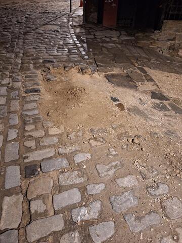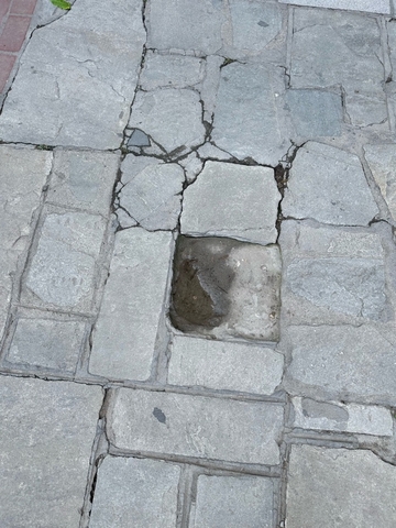 Τρυπες στο οδοστρωμα και σπασμενα πλακακια
