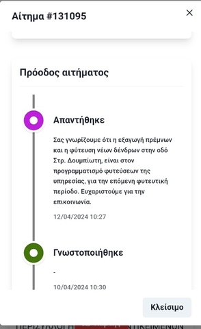 ΚΑΛΗΜΕΡΑ .ΠΑΡΑΚΑΛΩ ΓΙΑ ΤΗΝ ΦΥΤΕΥΣΗ 2 ΔΕΝΤΡΩΝ ΣΤΗΝ ΣΤΡ.ΔΟΥΜΠΙΩΤΗ 1Ο ΚΑΘΩΣ ΤΑ ΔΕΝΤΡΑ ΚΟΠΗΚΑΝ ΠΡΙΝ 2 ΧΡΟΝΙΑ ΚΑΙ ΔΕ ΦΥΤΕΥΘΗΚΑΝ ΕΚΤΟΤΕ ΝΕΑ