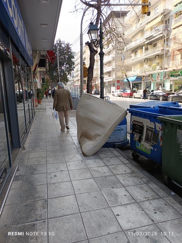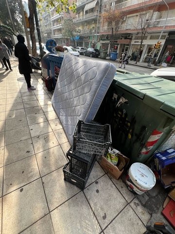 Στρώμα στον κάδο και στο πεζοδρόμιο