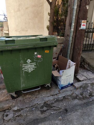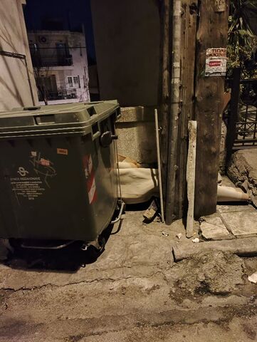 Σε δενδροδόχο επί της οδού Αισχύλου 3, κάποιος/α έχει τοποθετήσει ένα πλέγμα και ανάμεσα στα κενά, όρθια ξυλάκια από σουβλάκια. Επικίνδυνο.
