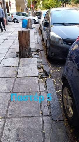 Σπασμένες πλακες στο πεζοδρόμιο κάνουν αδύνατη την διέλευση για ανθρώπους με προβλήματα κινητικότητας και ανθρώπους που φέρουν καροτσάκια με παιδιά
