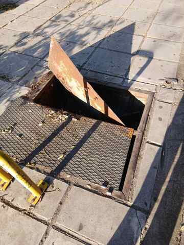 απι τησ Κωλεττη, στο υψος του εμπορικου εχει ανοιξει μια καταπακτη και η πορτα της εχει φυγει απο τη θεση της με κινδυνο να πεσει καποιον μεσα