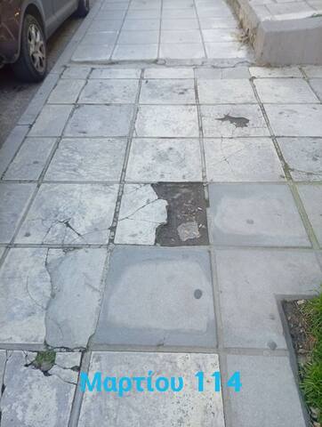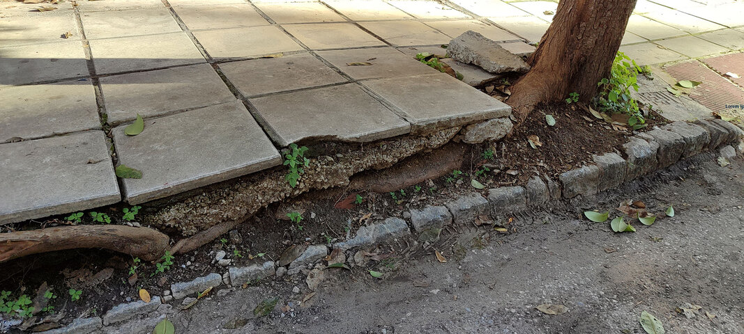 Καταστροφή πλακών πεζοδρομίου εξαιτίας της ρίζας του δέντρου που υπάρχει στην οδό Μελενίκου 41, Ντεπώ (περ. Βούλγαρη).